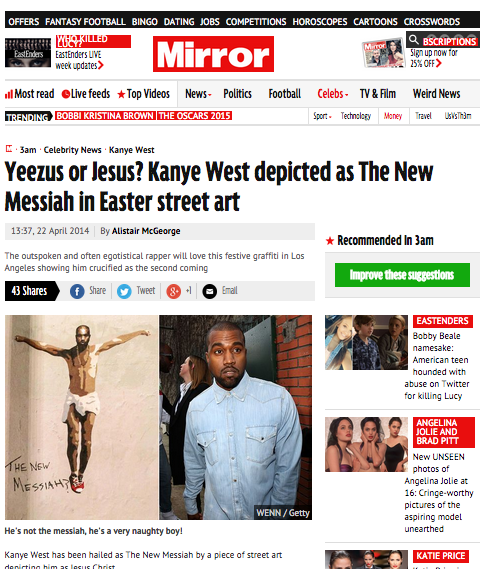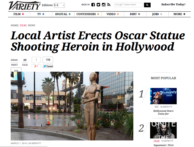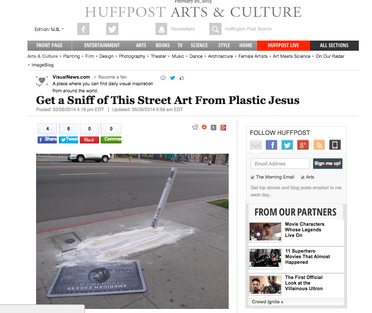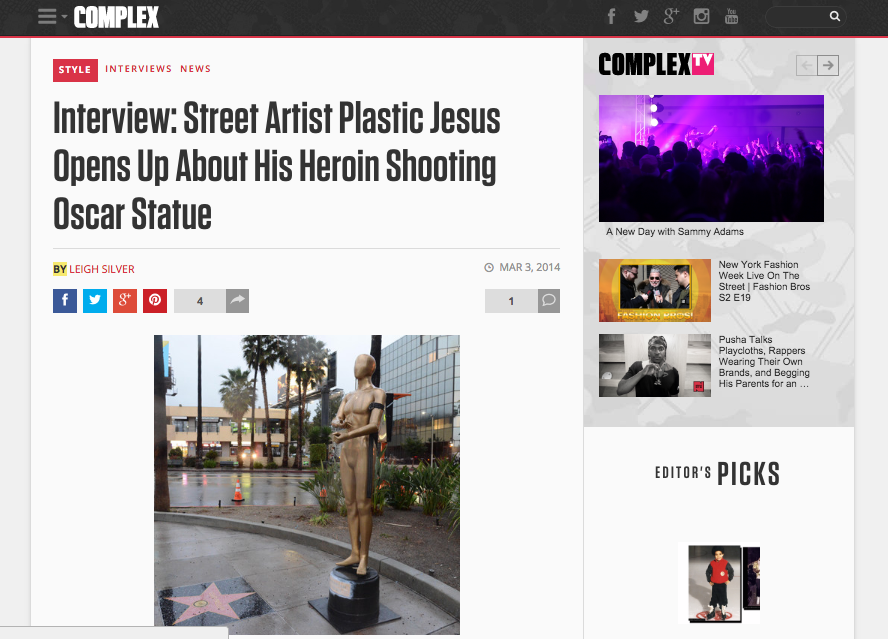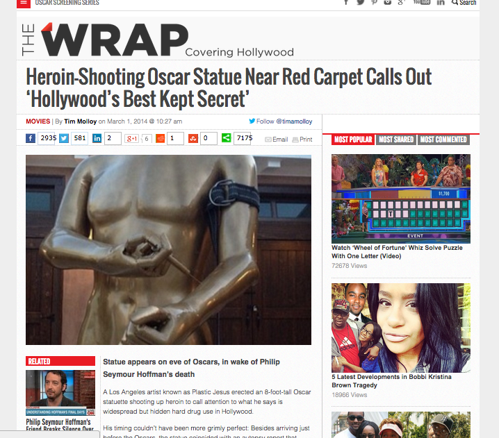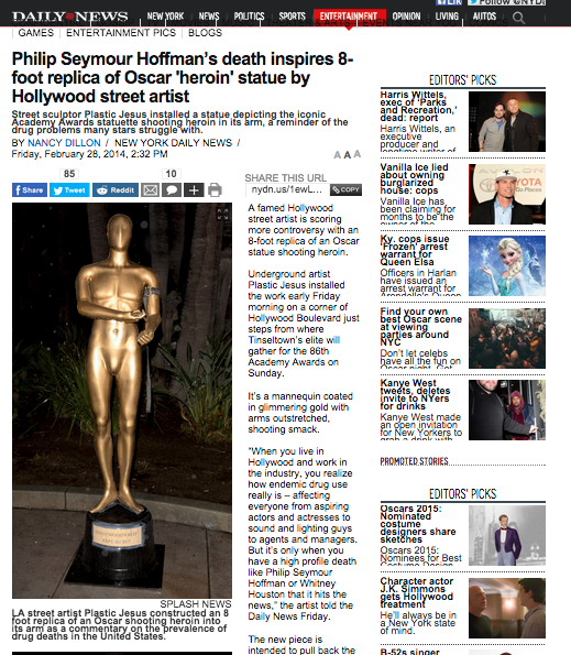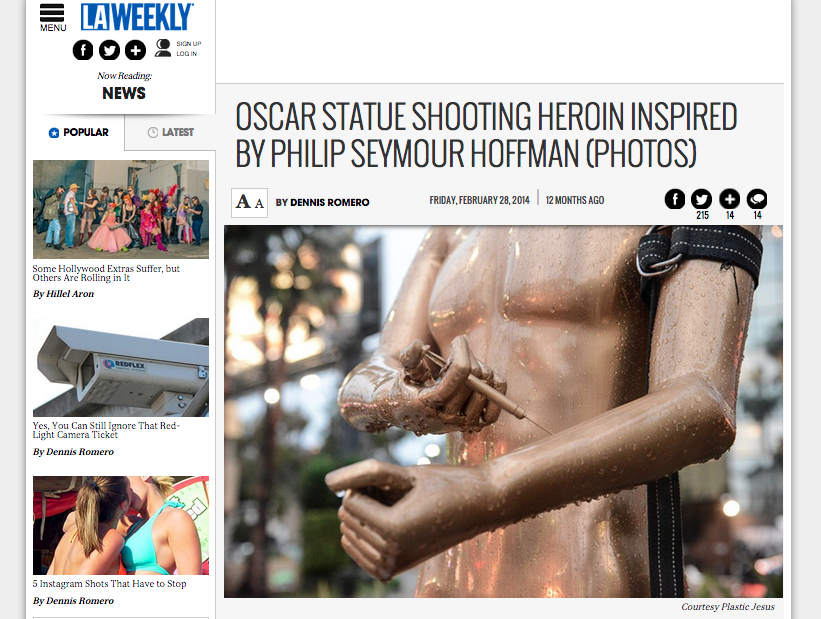 Coke-Snorting Oscar Statue Kicked Off Hollywood Blvd.Posted: 02/19/2015 4:32 pm EST Updated: 3 minutes ago Plastic JesusFebruary 19, 2015Comment